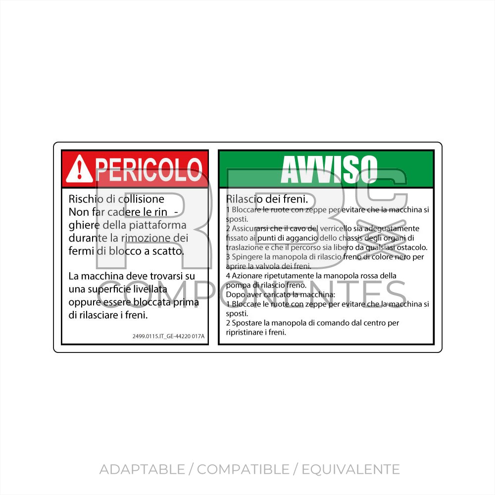 ADH RIESGO COLISION + LIBERACION FRENOS 165X90mm