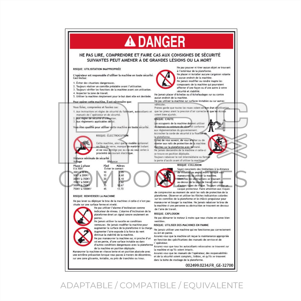 ADHESIVO COMPATIBLE REF GE 32700 FRANCES